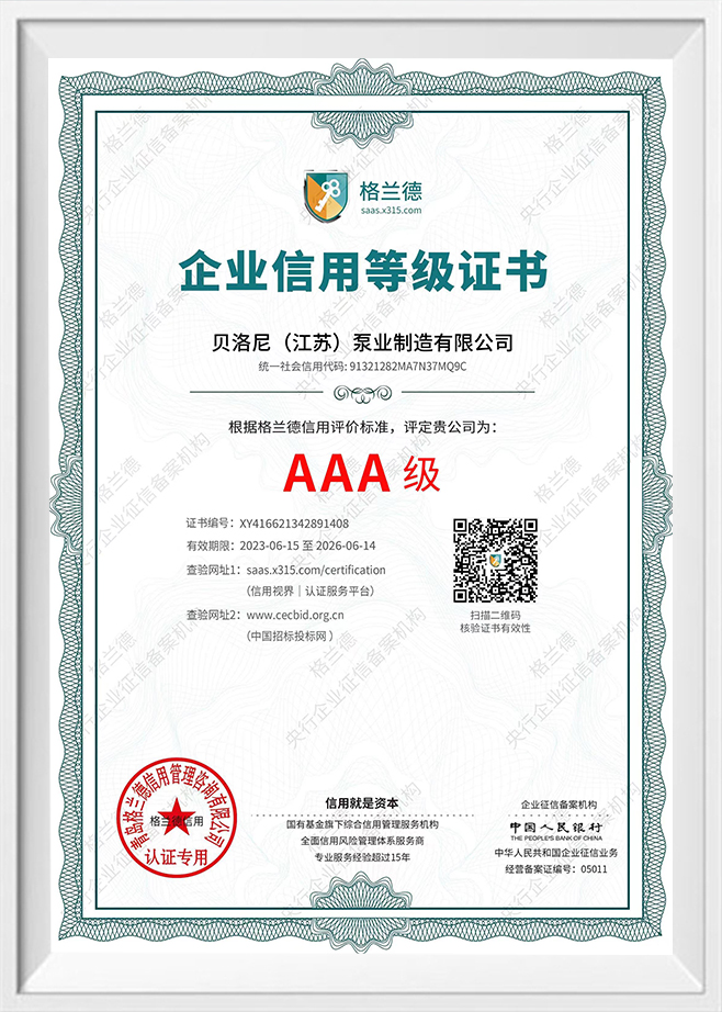 Unité d'intégrité de niveau AAA dans l'industrie des pompes
